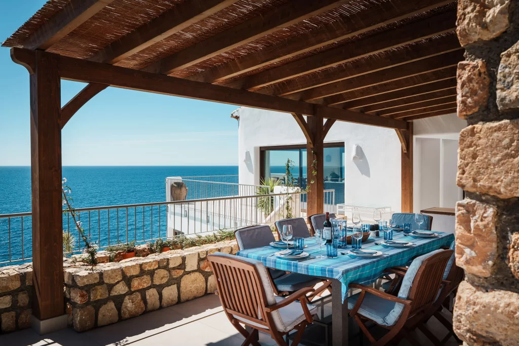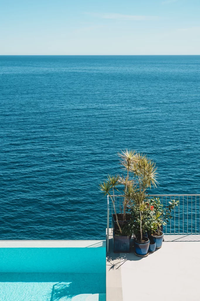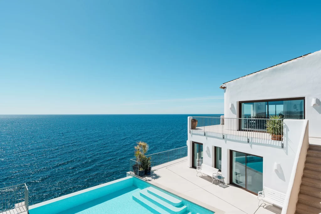 No era la primera vez que la fotografiaba. La primera vez que estuve en esta casa fue en 2021, cuando aún no se había tocado nada. Volver en la primavera de 2025 fue una sorpresa total. Lo que me encontré fue casi otra vivienda: le han construido una planta más en la parte de abajo y ahora tiene una piscina infinita que se funde con el mar. Las vistas desde ahí siguen siendo de esas que te dejan quieto un rato.