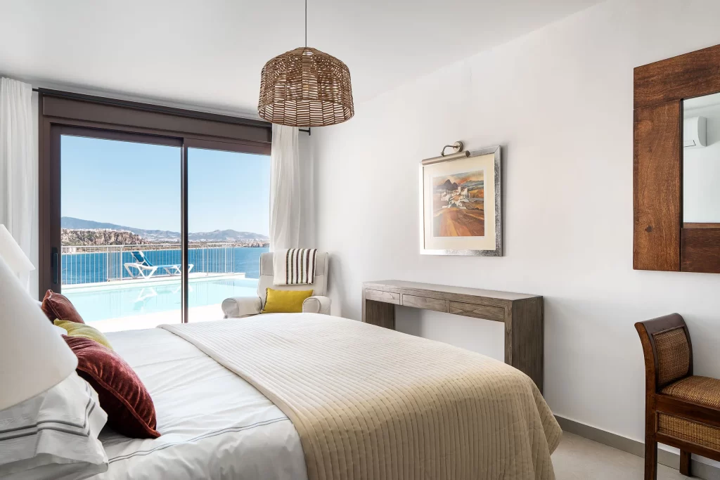 En este proyecto tuve la suerte de volver a hacer la fotografía de interiores en la casa Las Rocas, una casa bastante especial situada en lo alto de un acantilado en Salobreña, Granada, con unas vistas al Mediterráneo que quitan el aliento.